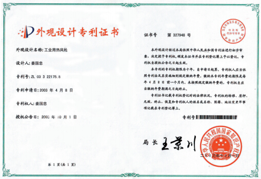 本廠 始建于1994年, 擁有塑膠件注塑生產(chǎn)加工、發(fā)熱芯生產(chǎn)線、成品裝配線,是從事電熱工具:熱風(fēng)槍、熱熔膠槍、塑膠焊槍等電器產(chǎn)品開發(fā)、生產(chǎn)的專業(yè)廠家,擁有二十多年的生產(chǎn)經(jīng)驗,其中工業(yè)用的調(diào)溫、恒溫、數(shù)字顯示、數(shù)字控制溫度的熱風(fēng)槍、熱熔膠槍已處于國際地位,并獲得多項專利。2000年榮獲《質(zhì)量監(jiān)督檢測中心合格產(chǎn)品》,2002年經(jīng)德國CE認(rèn)證中心認(rèn)證,榮獲CE證書。2003年榮 獲國家輕工部頒發(fā)的《中國名優(yōu)產(chǎn)品》證書,并...